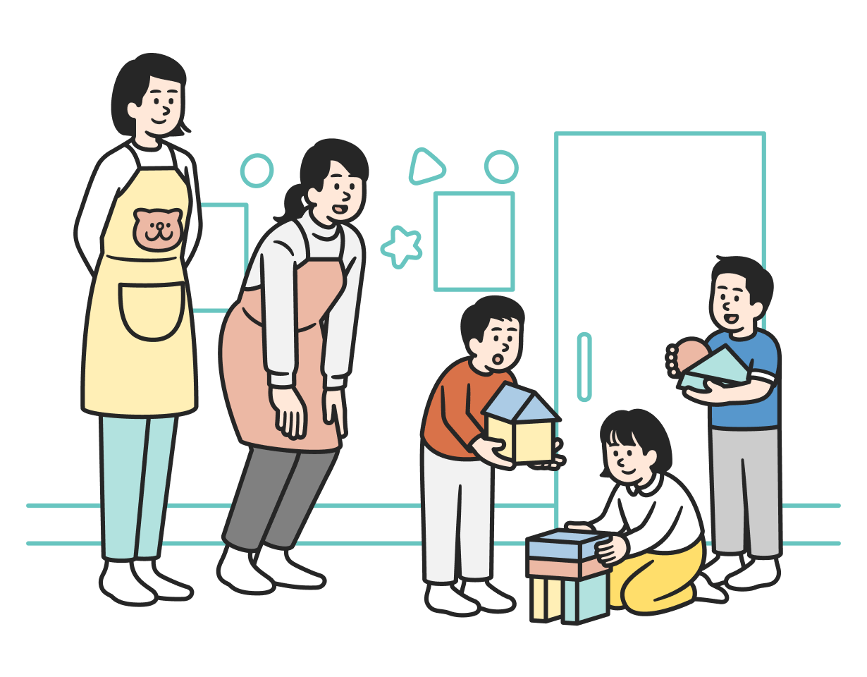 - 保護者が同年齢のこども達の発達・発育や遊びの様子を