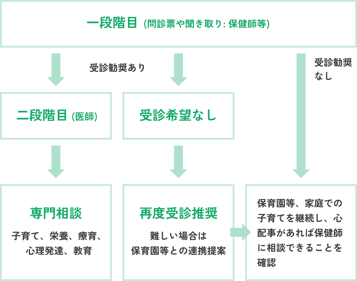 受診勧奨の基準(二段階目)についての連携が必要 - 二段階目に受診希望がない場合の対応